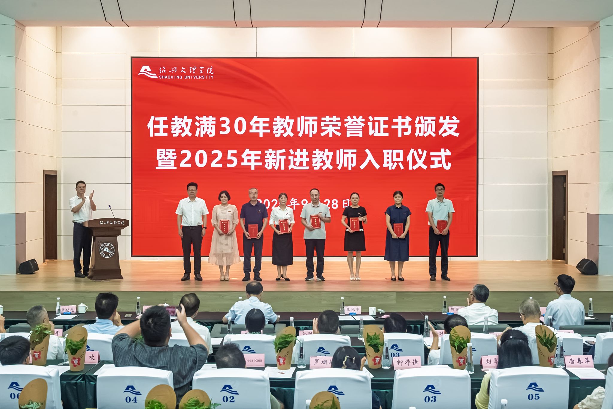 9月28日下午,学校在铁城科教馆一楼报告厅举行任教满30年教师荣誉证书颁发暨2025年新进教师入职仪式。校党委书记崔凤军,校长赵阳,校党政领导班子成员柳国庆、陈均土、黄曼等出席活动。副校长陈均土主持会议。