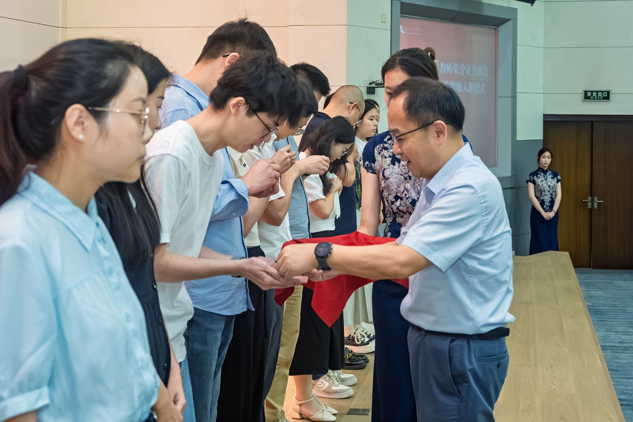 崔凤军向辛勤耕耘三十载的10位老教师致以崇高的敬意,向新加入文理大家庭的136位教师表示热烈的欢迎。崔凤军强调,广大教师要涵养大德行,做学生为人为事为学的“大先生”,要始终将“师德师风”作为从教的第一标准,坚定理想信念,筑牢信仰之基,以坚定的信仰引领学生,以深厚的家国情怀感染学生。崔凤军要求广大教师要锤炼真本领,做精通专业、善于启智的“授业者”要深耕专业领域,潜心研究教育教学规律,积极推进教育教学改革。崔凤军勉励广大教师要心怀大格局,做服务社会、共建未来的“奋斗者”,要扎根绍兴大地,深入了解绍兴经济社会发展需求,充分发挥自身的专业优势和智力资源,积极推动产学研用深度融合,努力成为服务地方高质量发展的智囊团和生力军。