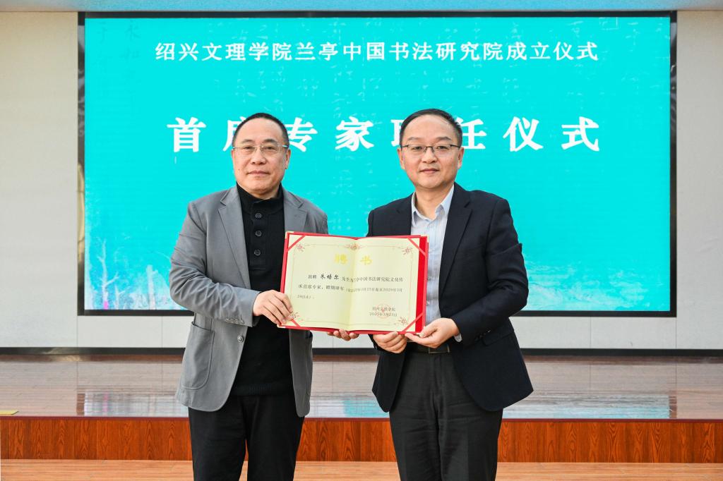 会上举行了兰亭中国书法研究院专家聘任仪式,聘任鲍贤伦为兰亭中国书法研究院名誉院长,拟聘任赵雁君为兰亭中国书法研究院首席专家,聘任祁小春为兰亭中国书法研究院理论首席专家,聘任刘恒为兰亭中国书法研究院创作首席专家,聘任沈浩为兰亭中国书法研究院教育首席专家,聘任朱培尔为兰亭中国书法研究院文化传承首席专家,聘任沈伟为兰亭中国书法研究院名誉副院长,聘任刘小华为兰亭中国书法研究院常务副院长,聘任鲁迅人文学院教授张建军为兰亭中国书法研究院副院长。赵阳为受聘专家颁发聘书。陈均土宣读聘任文件。